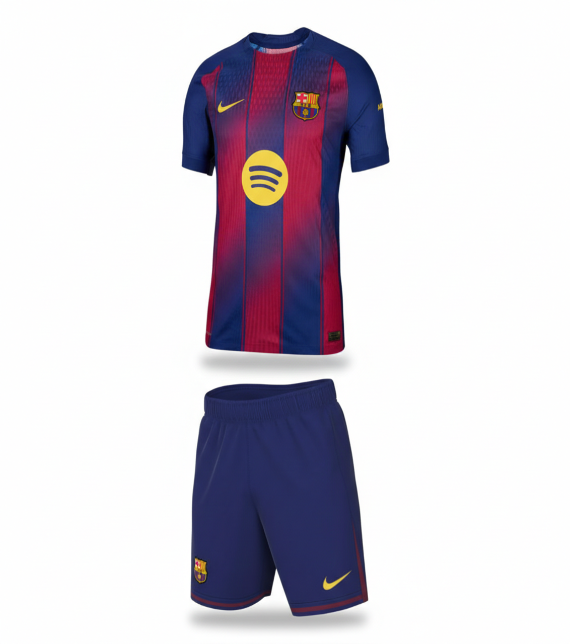 Equipación oficial del FC Barcelona para la temporada 25/26. Incluye camiseta oficial con opciones de talla, versión y parche, junto con pantalón corto oficial del club.